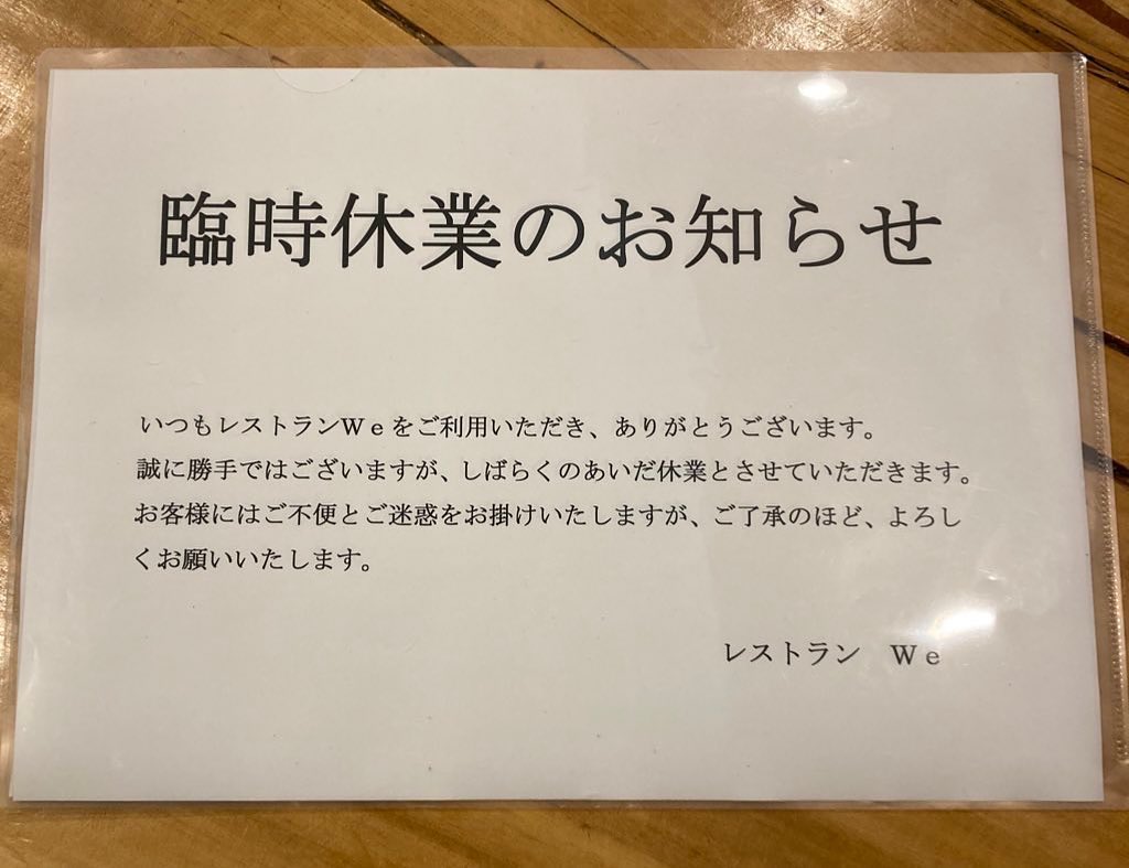 誠に勝手ではございますが、しばらくのあいだ休業とさせていただきます。